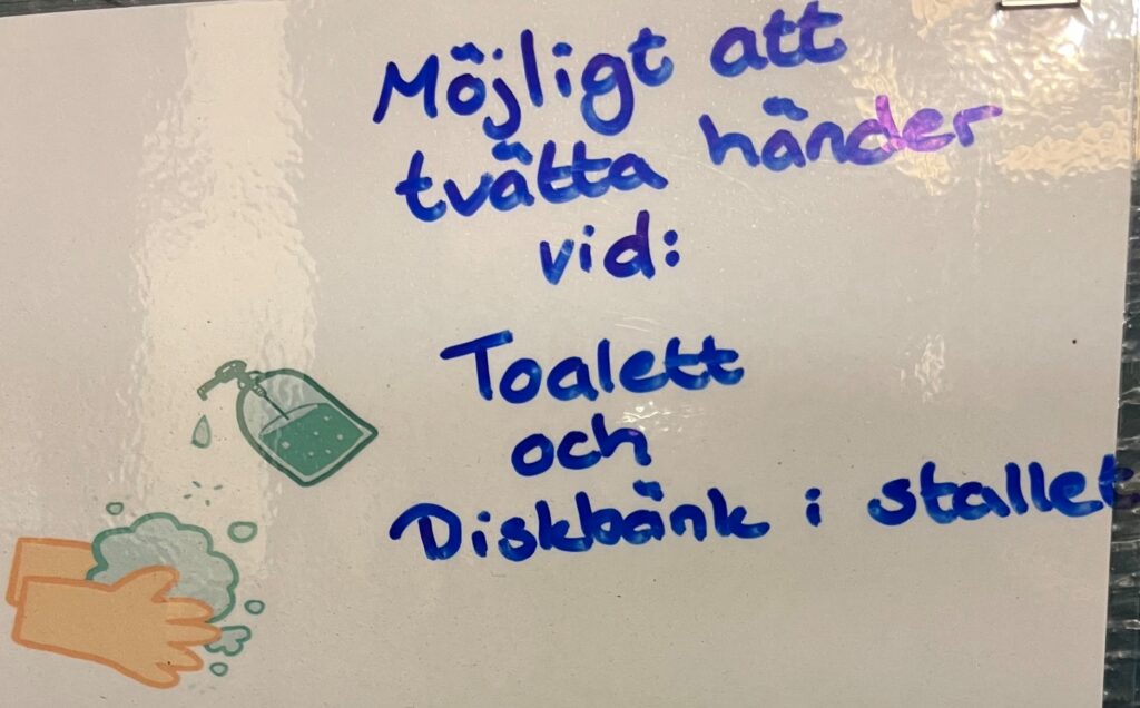 - Kolla med personal innan du går in hos hästarna. Max två stycken inne hos hästen samtidigt.